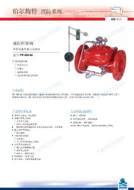 FANCYIND FP 450-66 型液位控制阀是一款液压驱动的隔膜式水力控制阀,具有双液位垂直式浮球。该款阀门可通过浮球开关信号