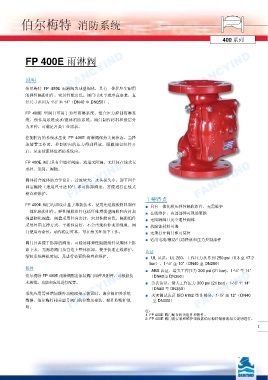 伯尔梅特 FP 400E 雨淋阀配备原装阀门组件及附件,可根据技 ■ 劳氏认证,最大工作压力 300 psi (21 bar),1-½” 至 14”
